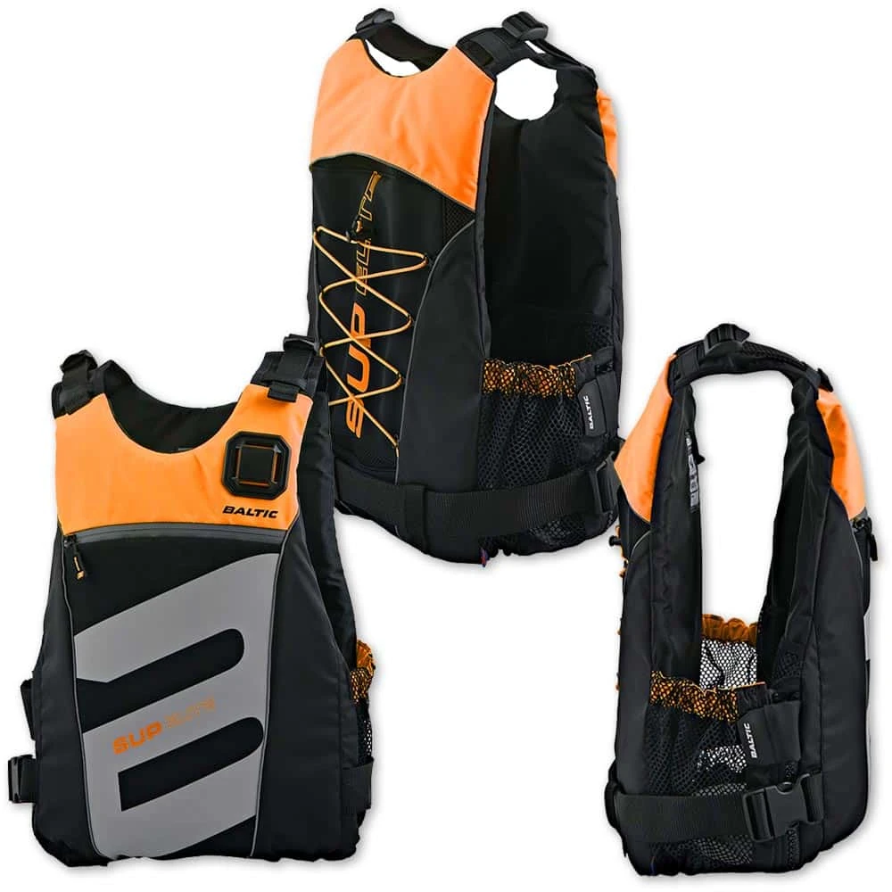 A buoyancy aid developed specifically for Stand Up Paddleboarding. SUP Elite is the ultimate buoyancy aid for those who paddle longer distances and want to be able to carry water and extra clothes. The buoyancy aid has a long body, which is well suited for SUP use. Suitable for beginners as well as experienced paddlers it is designed to give the user maximum mobility, both on the board and in the water. The buoyancy material has a unique design and sectioning on the front of the buoyancy aid. It is thin, compact and flexible which makes it easier for the wearer to get up on the board from the water and makes the buoyancy aid follow the paddle movement. Easy on and off through the zippered side part, and to don over the head. Adjustable shoulder straps and waist straps for the best fit. Elastic in the back means you can carry a towel or an extra layer of clothing, and a pocket for a hydration pack. Zippered pocket on the front of the buoyancy aid and a secure inner pocket. There’s an attachment for light on the front. 50N load-bearing capacity and is classified as a buoyancy aid.