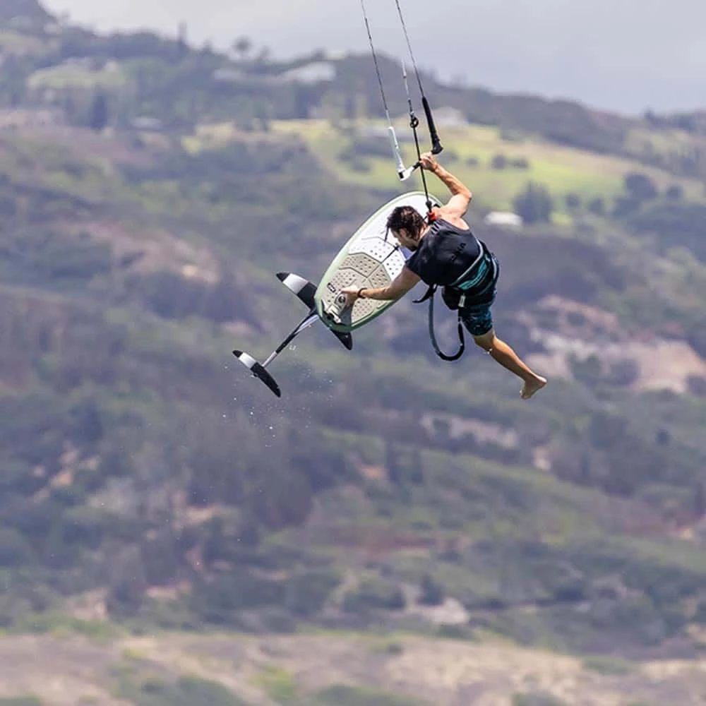 The 3d Shaping on the bottom of the board helps during touch downs by dispersing water flow and reducing water adhesion. It also aids in getting up and going by helping with directional stability when not on the foil.