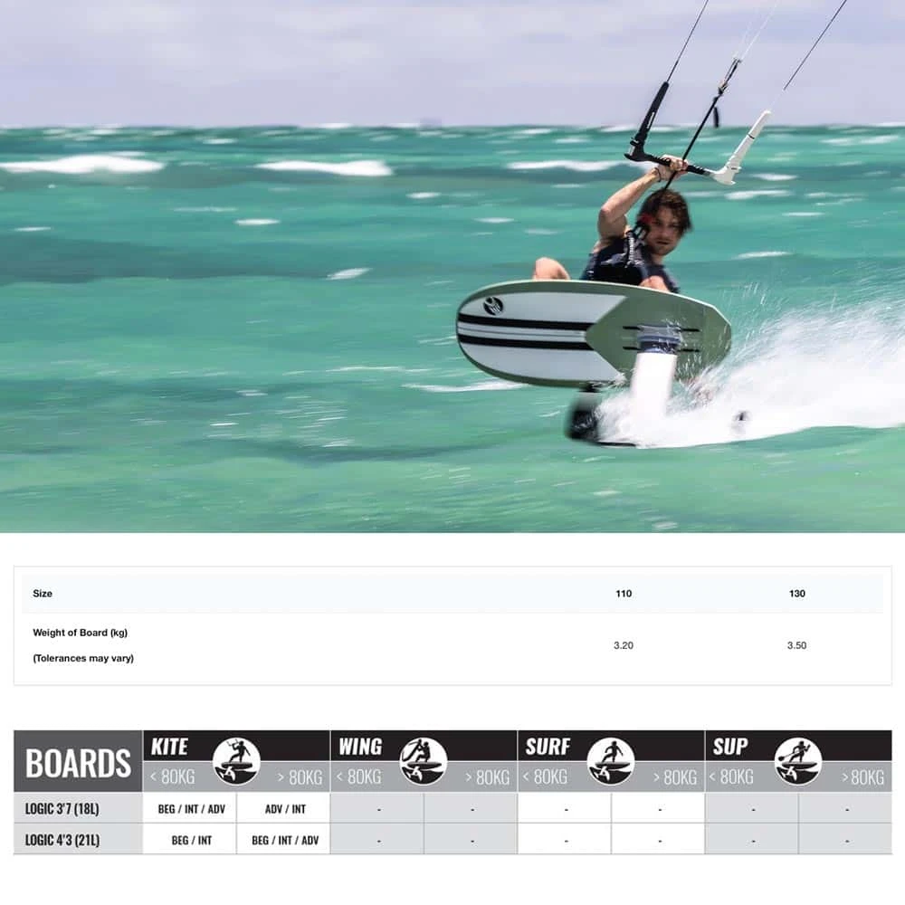 The Logic is as happy being pulled by a kite, behind a boat or when being towed into waves.
