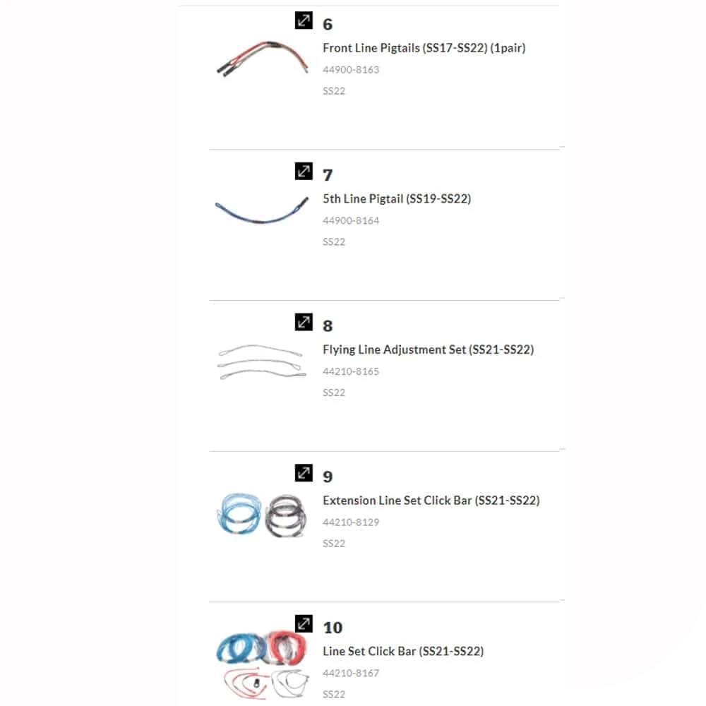 Here you’ll find a complete list of all the available spare parts, replacement parts and kite flying lines for the Duotone CLICK Bars… Both Quad (QC) and 5th Line models. Please refer to the parts image in the image viewer to reference the correct part required to the correct number in the variants. If your struggling give James a call 01202 733744 and he can advise on correct part or fitting instructions.