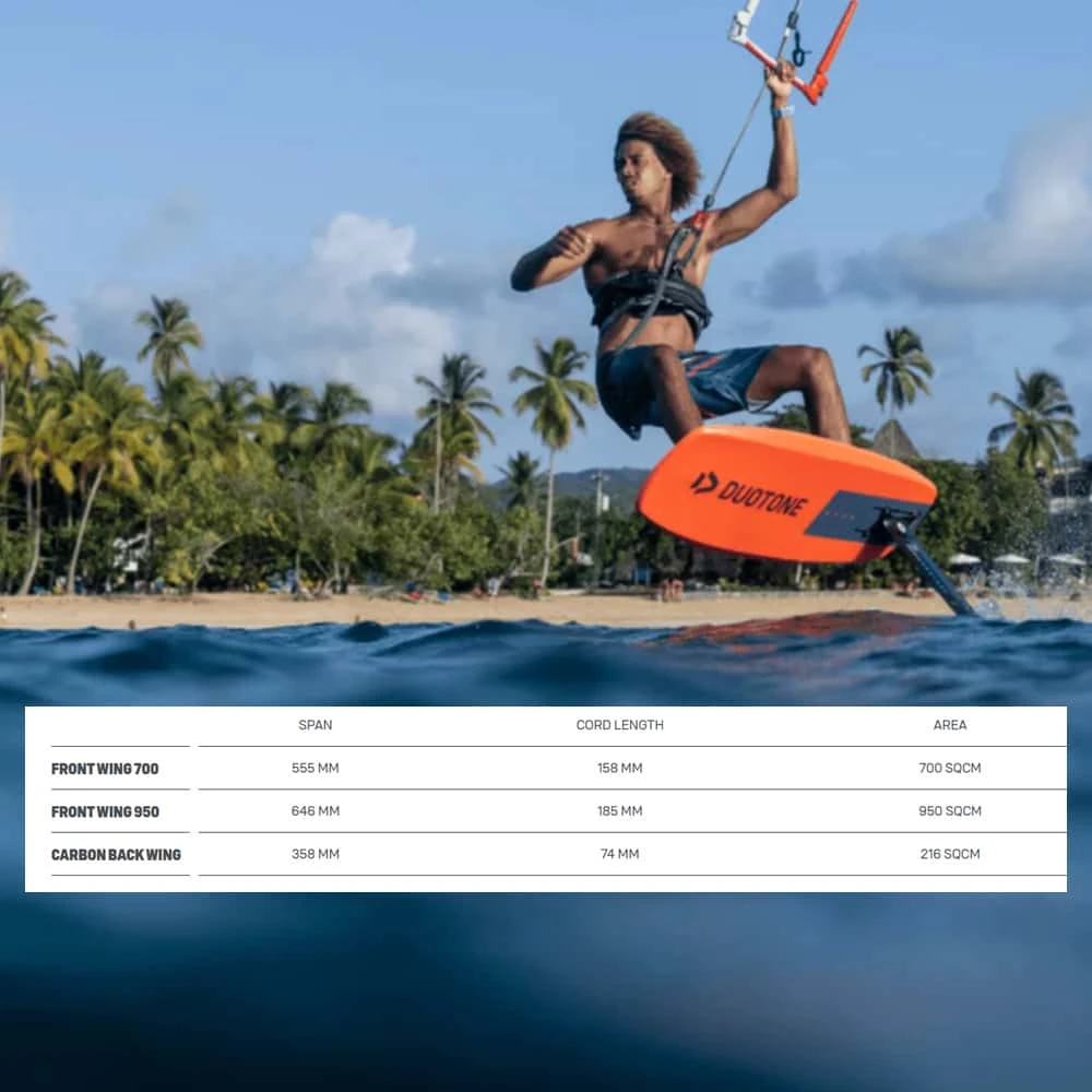 Available with a choice of four different length masts 40cm / 60cm / 75cm / 90cm and two front wing sizes 950 or 700.