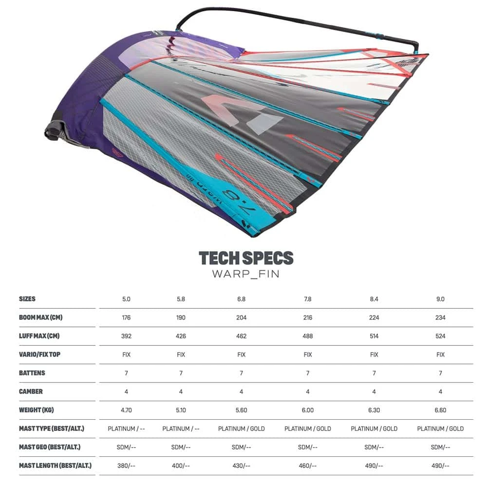 FOR 2022 WE COMPLETED REDESIGNED THE WARP_FIN AND WE CAN FIRMLY SAY THE CHANGES WE MADE LED TO THE BEST SLALOM RACING SAILS WE HAVE EVER MADE.