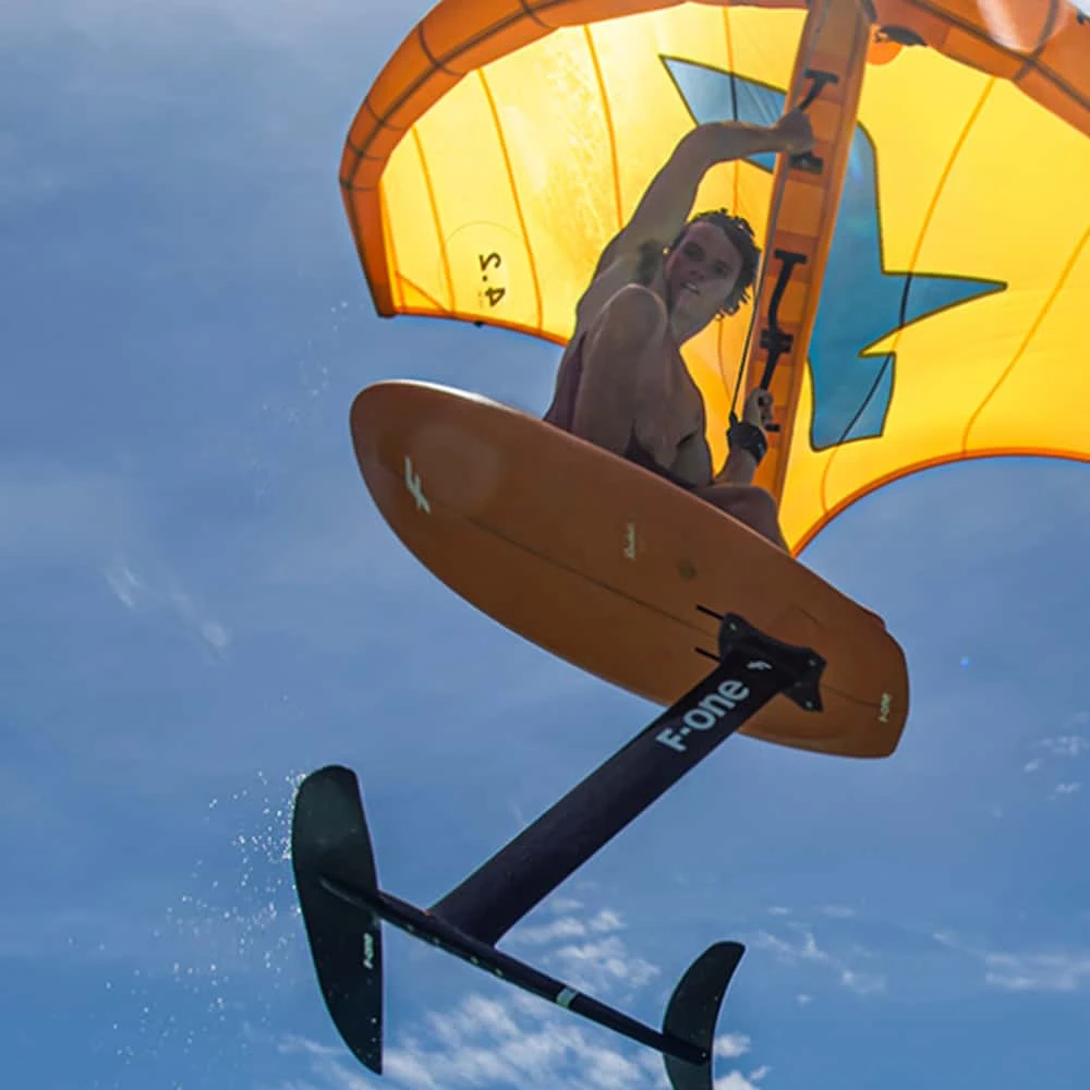 Built using the Monobloc construction with pre-peg carbon, the foils are both very light and really strong. This set-up offers better load transmission and better stiffness throughout the different parts for maximum control. The Titan connection allows to plug both an aluminum or carbon mast and the fuselage is split in two parts to facilitate transportation.