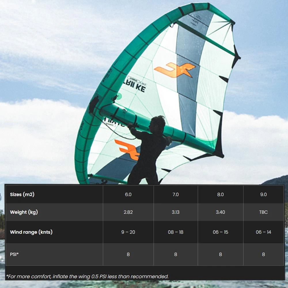 *For more comfort and smoothness, inflate the wing by 0.5 times less than recommended.