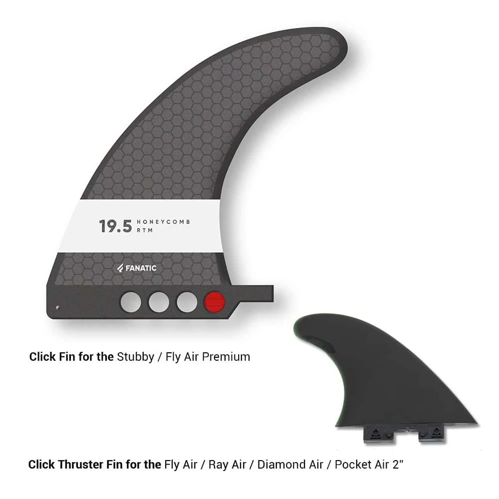 Centre Fins: 19.5cm for Stubby/10’4 & 10’8 Fly Air Premium