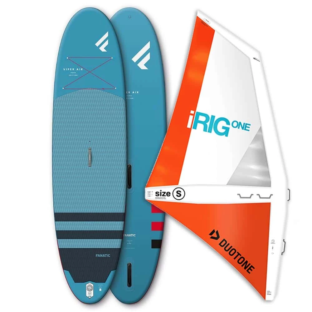 Our Fanatic Viper Air Windsurf iRIG package is perfect for both windsurfing and paddleboarding… This package is slightly bias to windusrfing but satill performs perfectly well as a paddle board. Whether you’re Windsurfing or Stand Up Paddle Boarding it really doesn’t matter, because the Viper Air WS is equally good at both and when you’re done the whole board stores into a backpack! The Viper Air WS is the ultimate watersports toy!