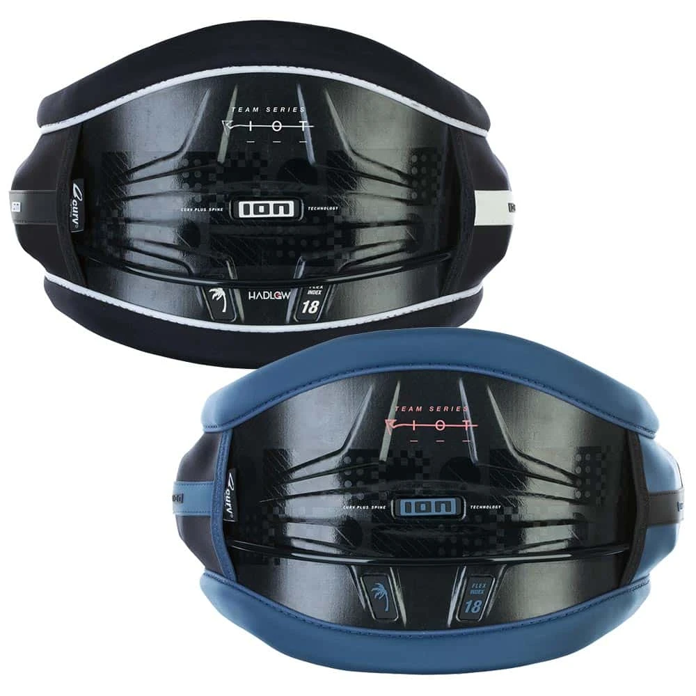 ION’s 3D Fit Technology provides the perfect fit for each individual’s body size and shape. Your individual fit derives from the back length and waist circumference. Therefore the Team Series is available in regular and tall sizes. The exchangeable Ergo_Pad on the inside offers optimal lumbar support in two profiles (each harness comes with two options – thin and thick pad – choose what suits you best). The Riot Curv Team Series is the most rigid harness in ION’s range (flex index 18) and offers a direct and agile feeling. An ultra-lightweight Curv construction distributes forces evenly throughout the harness. At the same time, it’s flexible enough to allow for perfect freedom of movement. Non-water-absorbent Hyper_Foam contributes to the overall ergonomic fit and light weight while the Neoprene_Belt provides flexibility in the front. ION’s sleek Spectre Bar (including kite hook) completes the Riot Curv Team Series. Its Curv_Flaps create a seamless and optimal force distribution throughout the harness. Comes with integrated Knite_Knife Multitool 2.0. The Team Series is the choice of athletes like Aaron Hadlow and Gianmaria Coccoluto.