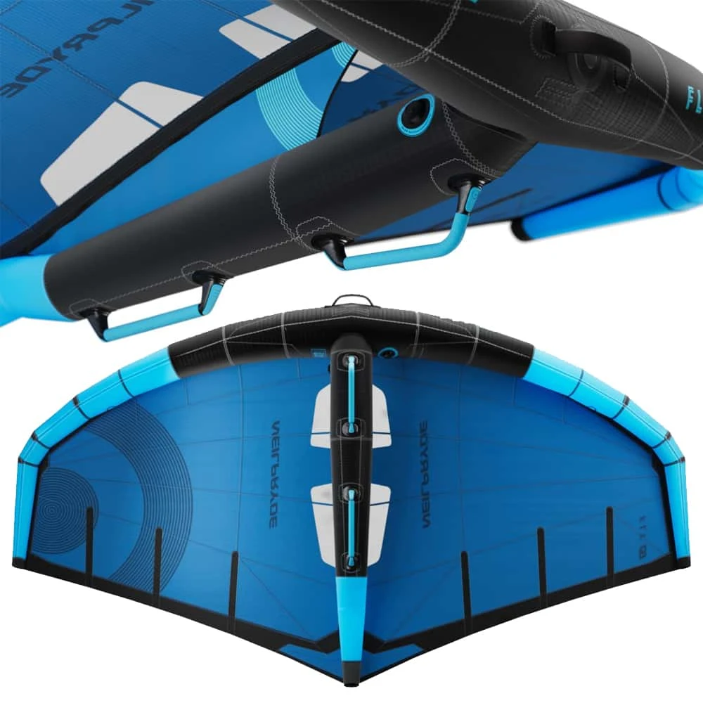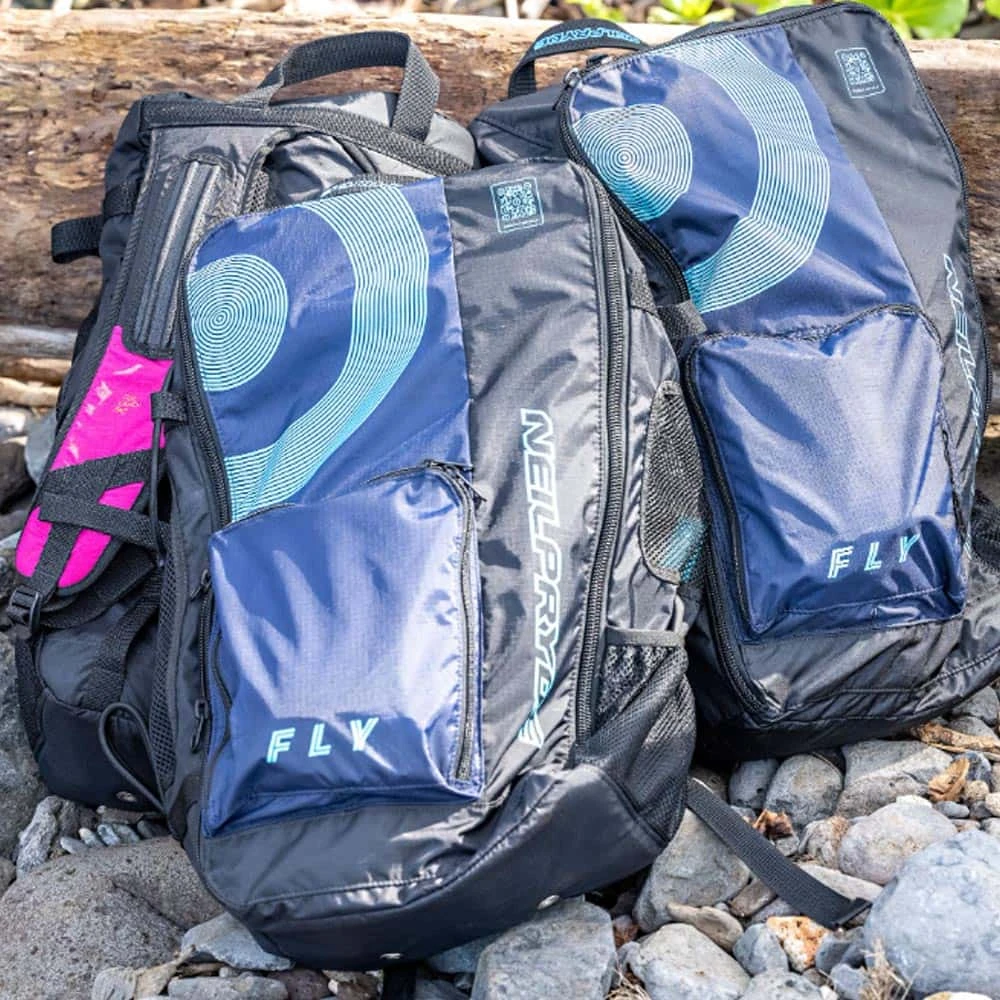 In addition, many other details and improvements have been incorporated into our handles. The ergonomic shape of the handles ensures that the position of the wrists always provides the most comfortable and fatigue-free grip possible. The handles are perfectly balanced for each wing size and offer a longer gripping surface as the wing size increases. We have also put our valves to the test and improved them. Our new Push Valves not only consistently display pressure while pumping, without annoying flickering of the needle, but also pass more air through in less time. The two separate bladders increase safety, while also preventing the strut bladder from serving as an expansion chamber for the front tube bladder and losing pressure and stiffness where needed most. Rounded off with many other small and large details, such as the backpack style bag including helmet, pump holder and foil carry padding, and delivered with our super functional Dyneema Rope Leash with anti-tangling swivel and the best available “made in germany” bladders with Anti-Twist system. We might not have outrun evolution, but we are convinced that we have made a big step into the future of wing design with the new NeilPryde Fly Wing. Just as the real fly often lives a slightly underestimated existence, on closer inspection it is an almost unrivaled masterpiece of natural engineering. We like to see our wings in the same way. Just looking way sexier than a real fly!