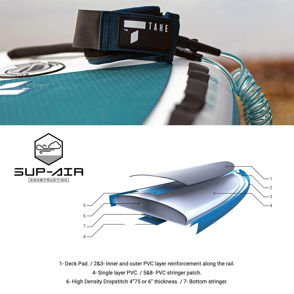 Our unique SUP AIR construction technology features a dual layer stringer and side rails for rigidity combined with rugged drop-stitch panels to reduce weight without sacrificing durability.