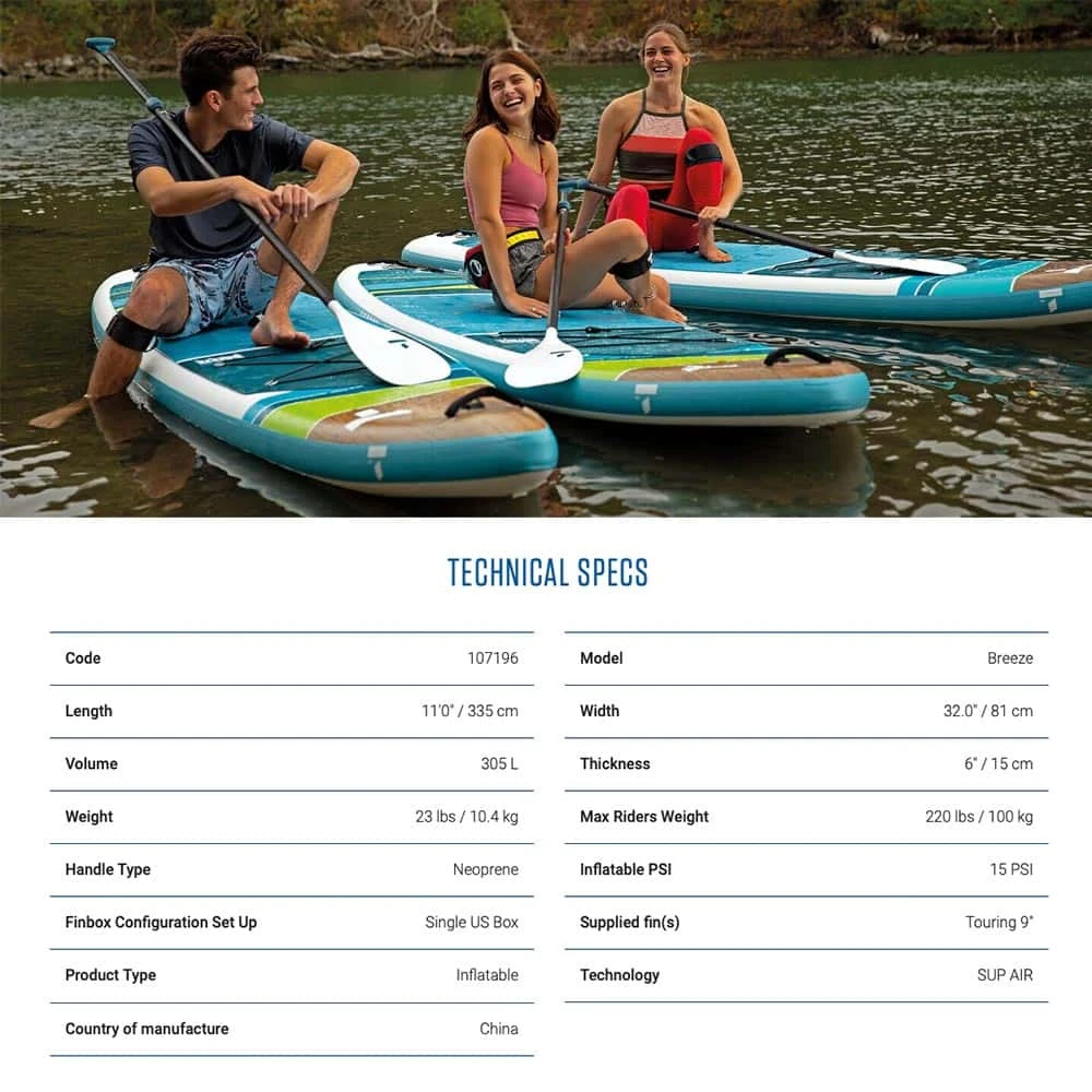 The Breeze 11’ Wing inflatable complete package is the perfect board for flat-water cruising with family and friends as well as going on longer distance touring-style adventures. The 11’ Wing AIR works great for novice riders up to 220lbs/100kg
